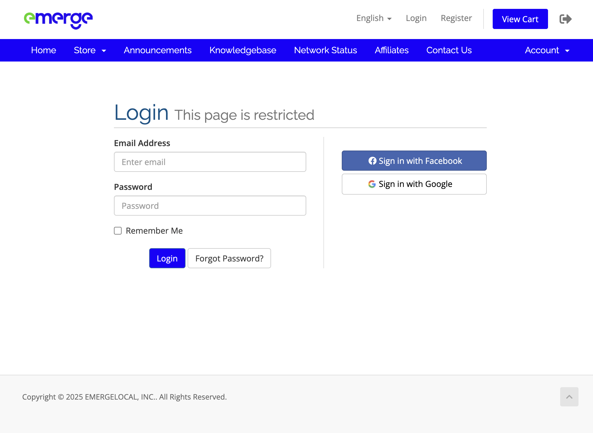 2. If you've forgotten your password, click the "Forgot Password?" button to retrieve it. A password reset email will be sent to your inbox with the subject "Reset your password" from billing@emergelocal.com.